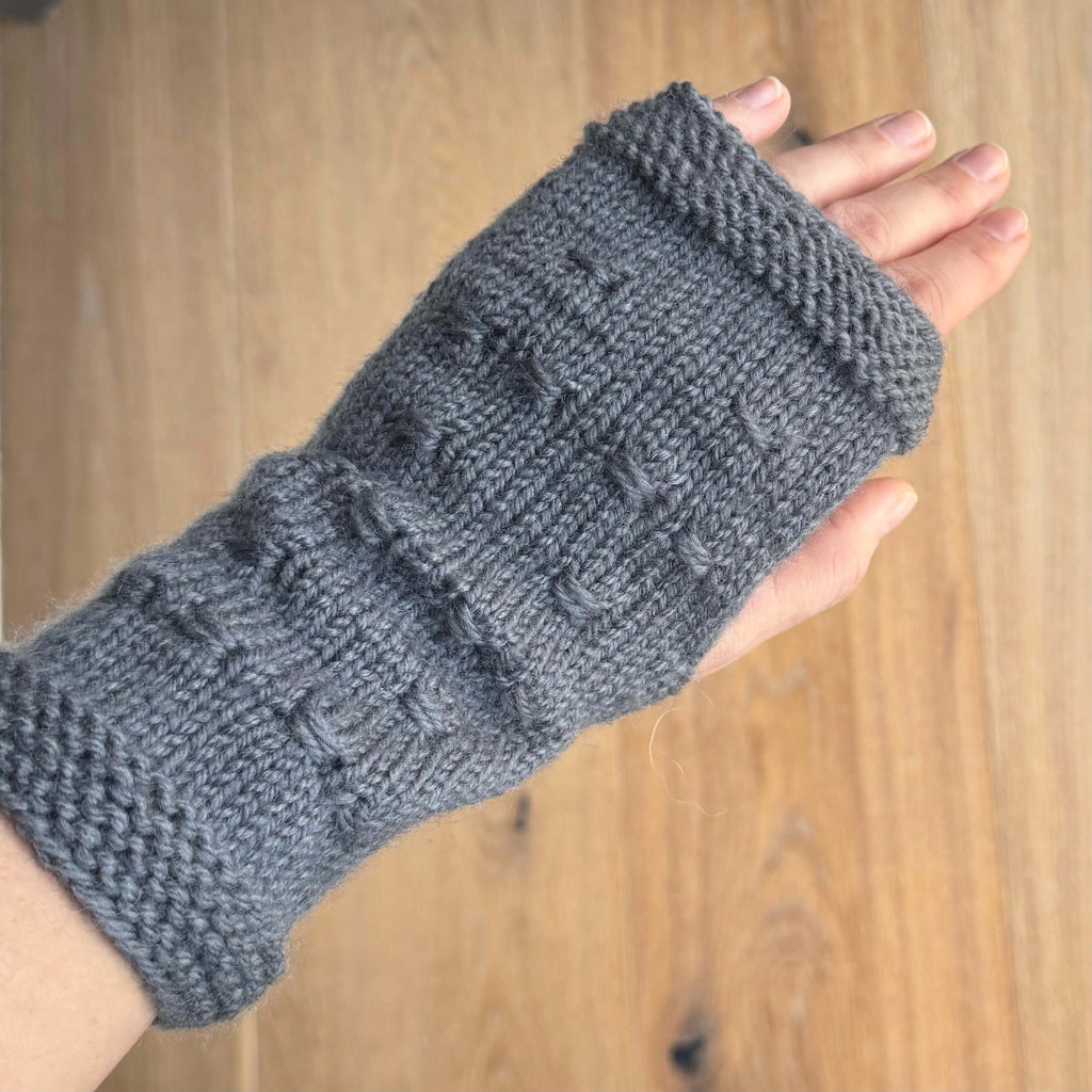 Rankų darbo ilgos riešinės iš pusvilnės su skylute nykščiui