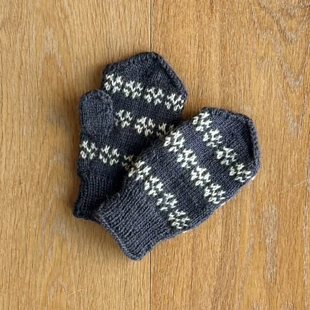 Rankų darbo vaikiškos pirštinės iš pusvilnės.