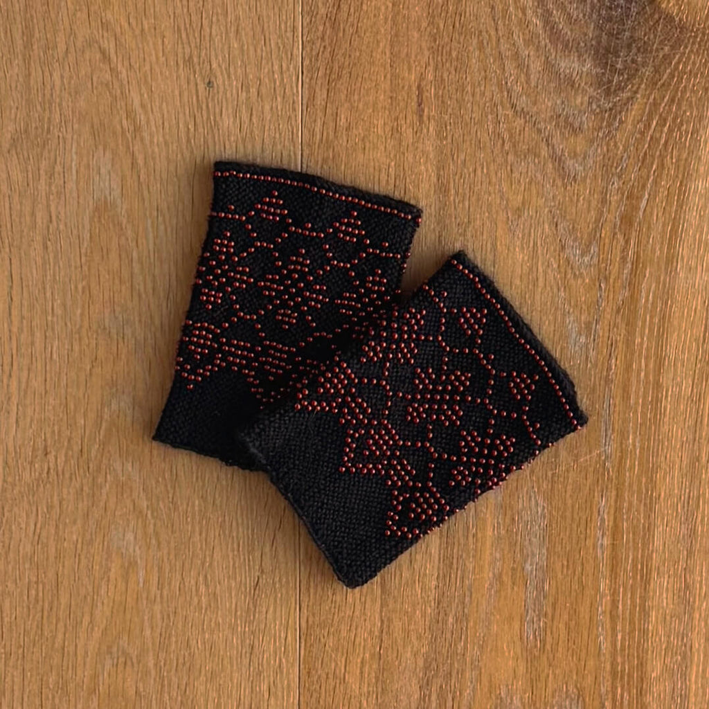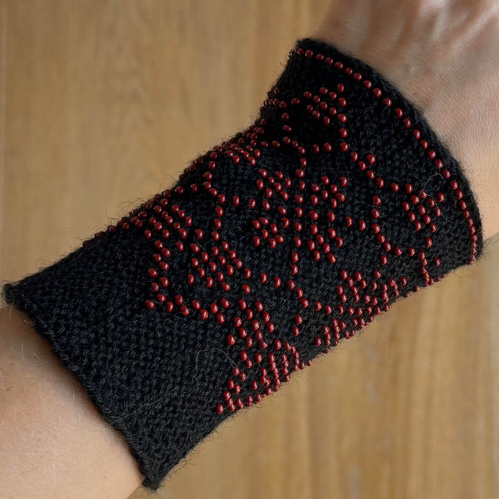 Rankų darbo karoliukais dekoruotos riešinės iš merino vilnos