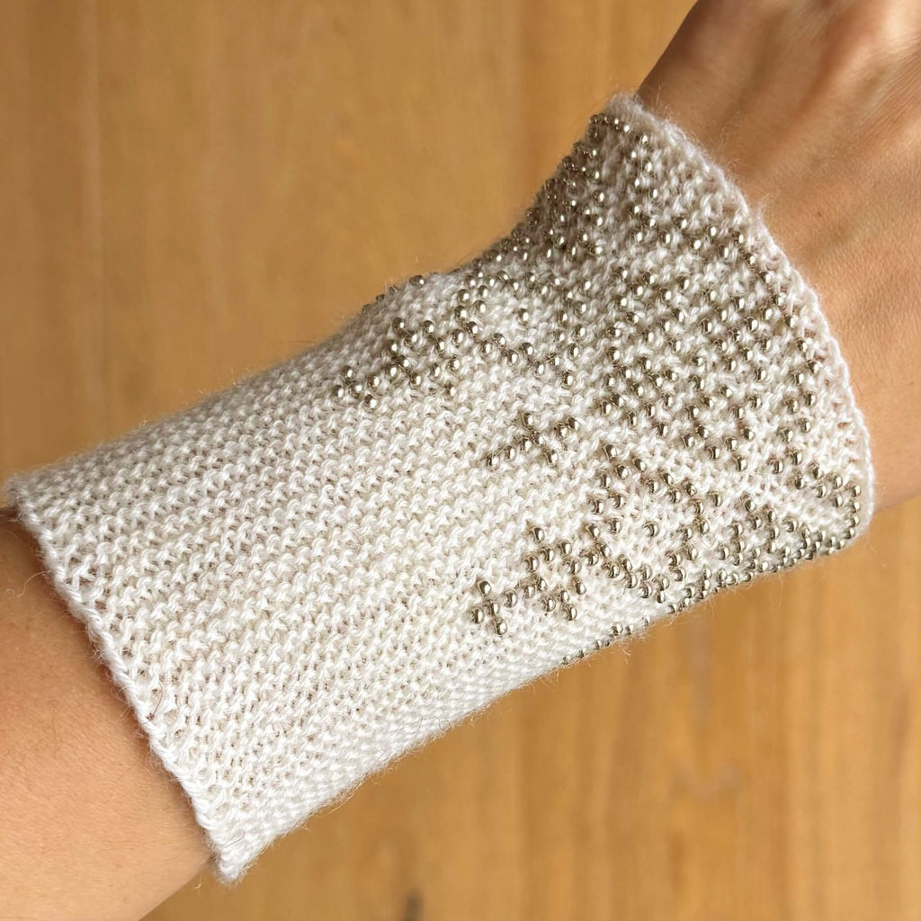 Rankų darbo karoliukais dekoruotos riešinės iš merino vilnos
